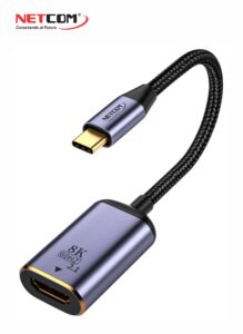 CABLE ADAPTADOR DE DISPLAYPORT DP 1.4 MACHO A HDMI 2.1 HEMBRA ULTRA HD 8K A 60HZ- 4K A 144HZ ALUMINIO FORRADO EN NYLON NETCOM