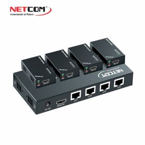 KIT SPLITTER EXTENDER HDMI 1X4 SALIDAS POR UTP CAT 6 CAT 7 HASTA 60 METROS FULL HD 1080P A 60HZ DE METAL NETCOM