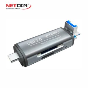 LECTOR DE TARJETAS MEMORIAS SD / MICRO SD 3 EN 1 A USB 3.0 / MICRO USB Y USB TIPO C DE ALUMINIO NETCOM