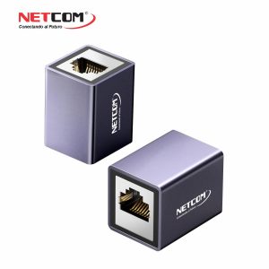 ADAPTADOR UNION DE RJ-45 RED UTP CAT 6 CAT 7 CAT 8 HEMBRA A HEMBRA 40GBPS EMPALME DE ALUMINIO NETCOM