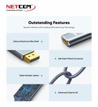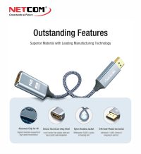 01 CABLE ADAPTADOR DE DISPLAYPORT DP MACHO A HDMI HEMBRA ULTRA HD 4K 30HZ ENMALLADO CON CONECTORES DE ALUMINIO NETCOM