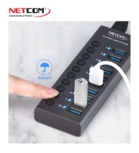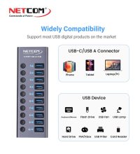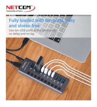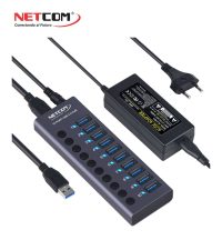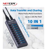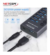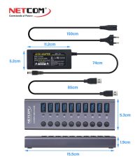 Para proporcionar condiciones de transmisión de alta velocidad para más dispositivos USB, NETCOM le ofrece este HUB USB 3.0 de 10 puertos con switch independiente más fuente para ser alimentado. El diseño razonable de la interfaz es adecuado para múltiples dispositivos, ocupando poco espacio, pero brindándole un espacio mejor organizado. Para conectar múltiples dispositivos USB y operar simultáneamente, viene equipado con un adaptador de alimentación de 12V/5 A y así proporcionar energía estable.