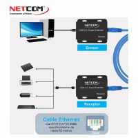 KIT EXTENDER USB 2.0 DE 4 PUERTOS X UTP CAT 6 CAT 7 CAT 8 HASTA 60 METROS ACTIVO NETCOM