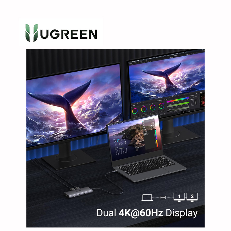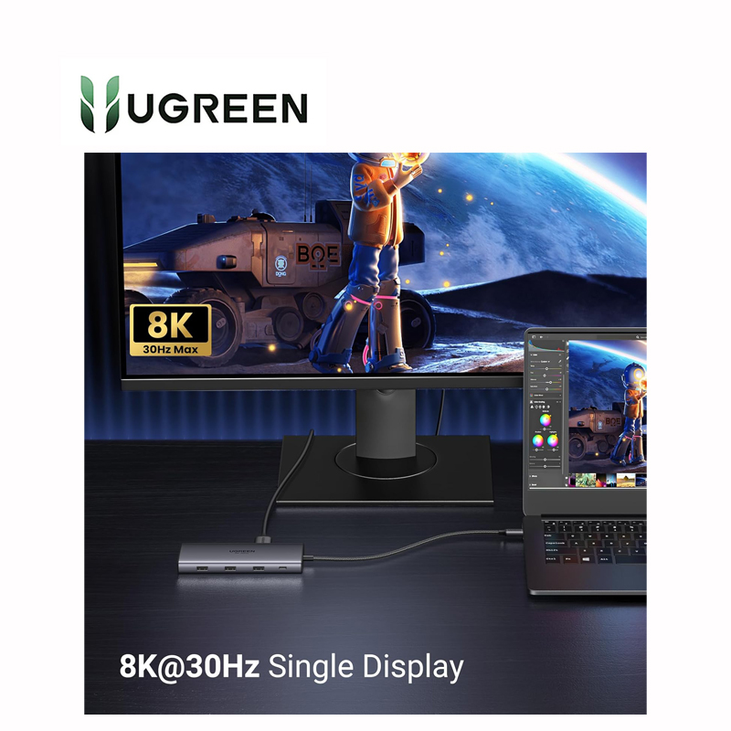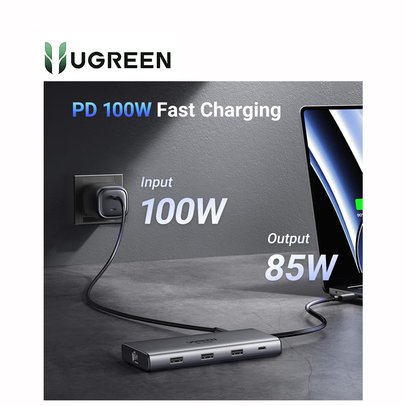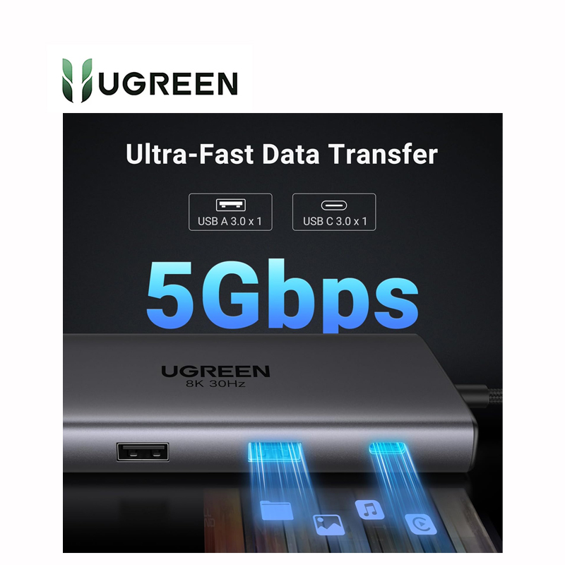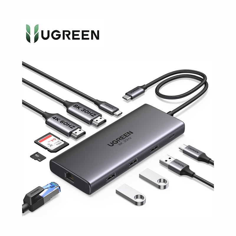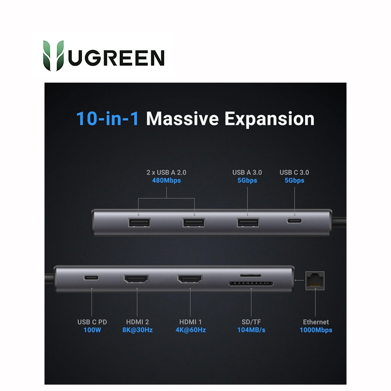 CABLE ADAPTADOR HUB 10 EN 1 DE USB 3.1 TIPO C A 1 HDMI 8K A 30HZ, 1 HDMI 4K A 60HZ, 1 RJ-45 RED GIGABIT, 2 LECTOR DE MEMORIA SD/MICRO SD, 1 USB-C 3.0, 2 USB- A 2.0, 1 USB-A 3.0 Y 1 TIPO C PD 100W CM639 UGREEN