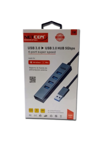 CABLE ADAPTADOR HUB USB 3.0 DE 4 PUERTOS USB 3.0 CON CABLE DE 1 METRO NETCOM