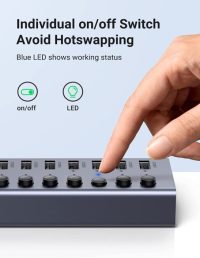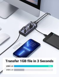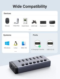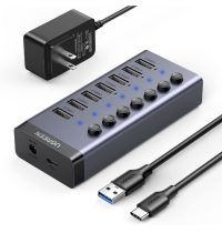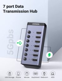 Ugreen 90305 Hub USB 3.0 de 7 puertos + USB tipo B a USB A Cable macho con adaptador de corriente de 12v CM481