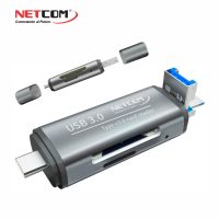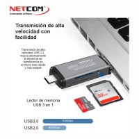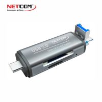 LECTOR DE TARJETAS MEMORIAS SD / MICRO SD 3 EN 1 A USB 3.0 / MICRO USB Y USB TIPO C DE ALUMINIO NETCOM