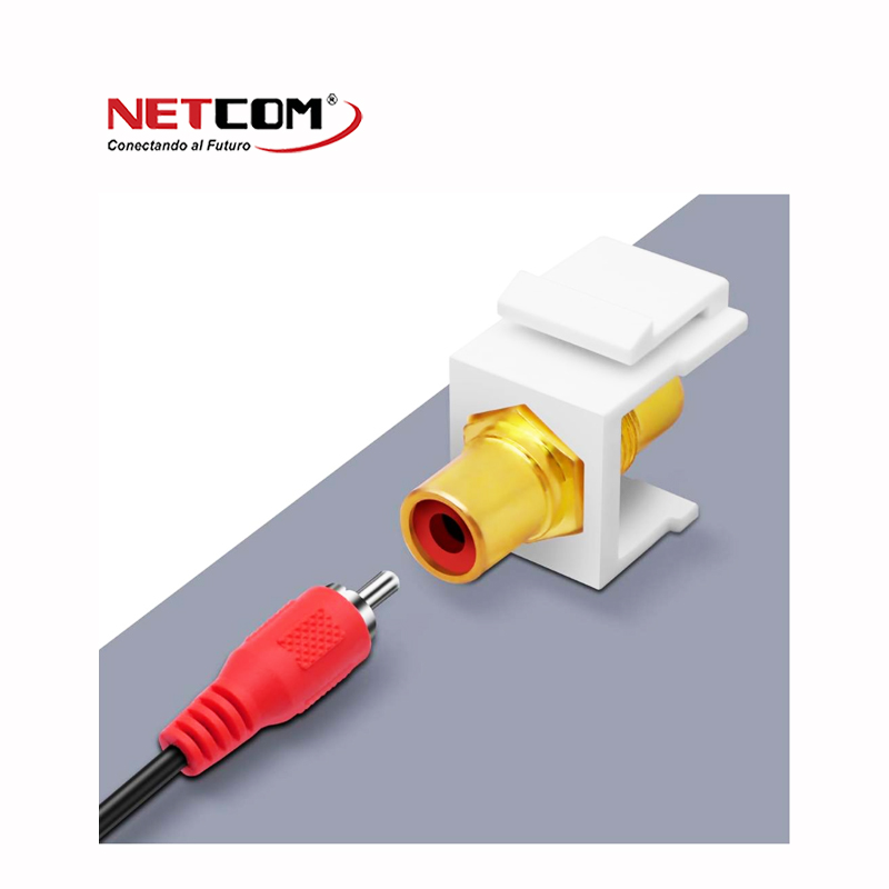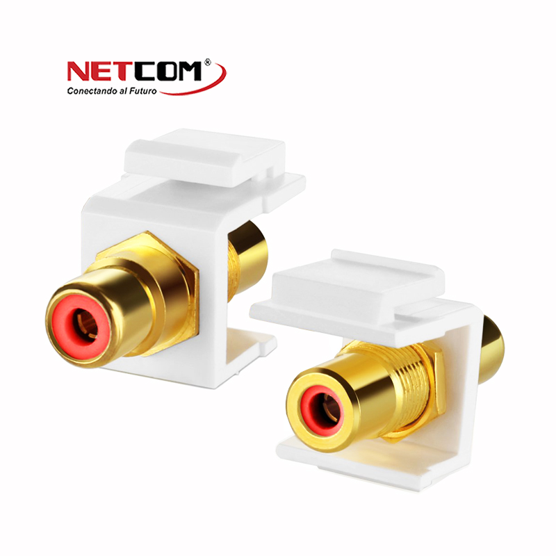 ADAPTADOR EMPALME UNION AUDIO RCA ROJO HEMBRA A HEMBRA DADO RECTO PARA MODULO DE PLACA NETCOM