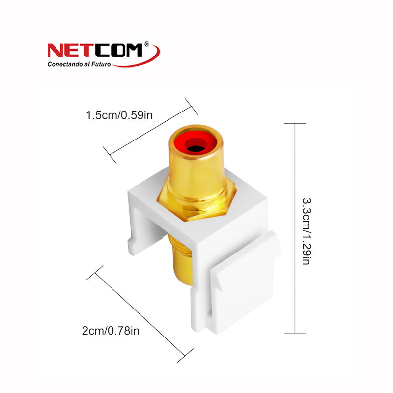Esta inserción de conector Keystone RCA color rojo proporcionan una forma segura y rápida de conectar un cable RCA a sus equipos como puede ser un subwoofer, receptor estéreo u otro dispositivo equipado con puerto RCA de audio.