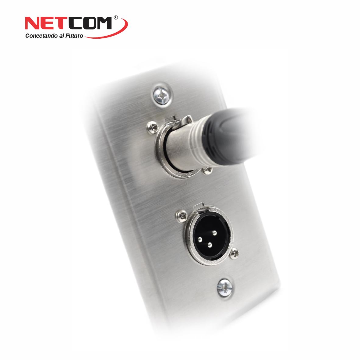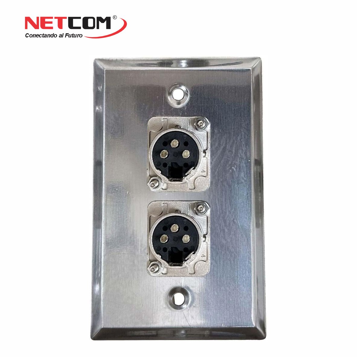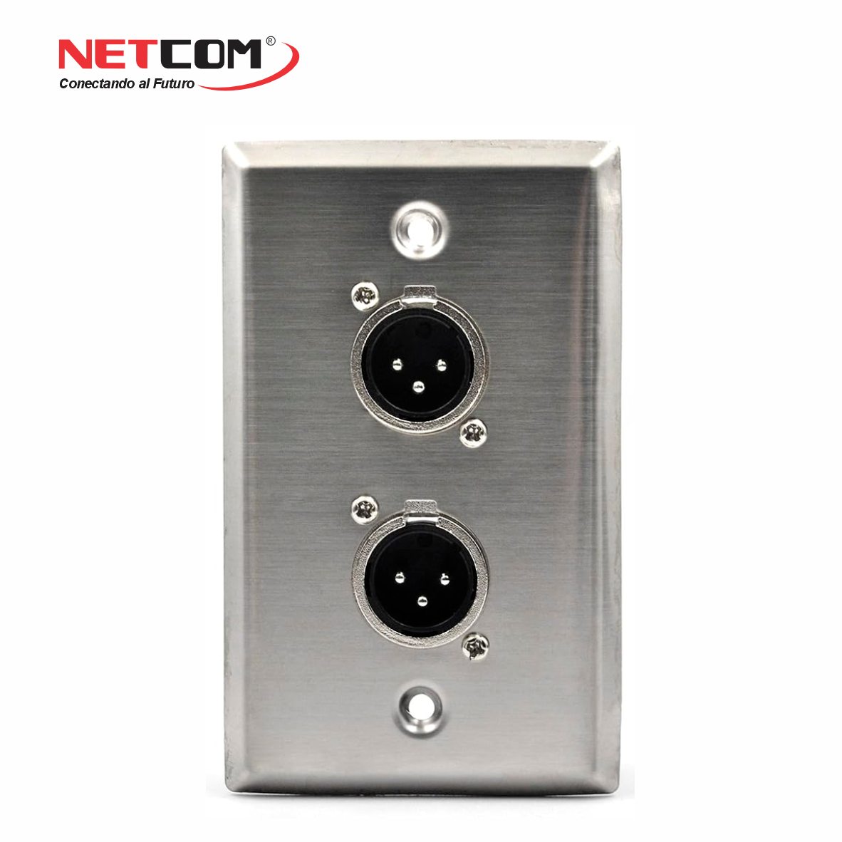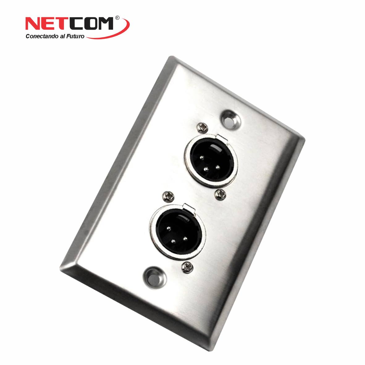 FACE PLATE PLACA DE METAL DE 2 PUERTOS XLR CANON DE 3 PINES MACHO NETCOM