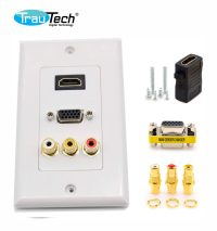 01 FACE PLATE PLACA DE PLASTICO DE 1 HDMI 2.0 / 1 VGA / 3 RCA TRAUTECH.