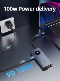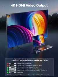 Este concentrador multi USB C le permite transmitir vídeo 4K UHD o Full HD 1080P a televisores de alta definición, monitores o proyectores. Disfrute de imágenes nítidas y claras con resolución 4K a través del puerto HDMI y resolución 1080p a través del puerto VGA. Es ideal para la transmisión cristalina, los juegos o el trabajo.