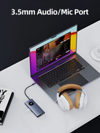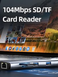 Con un puerto de micrófono/audio de 3,5mm, los usuarios pueden conectar fácilmente altavoces, auriculares y más con un sonido claro y de alta calidad. Velocidades de transferencia de hasta 104Mbps son posibles con el lector de tarjetas SD/TF, lo que permite transferencias de datos rápidas.
