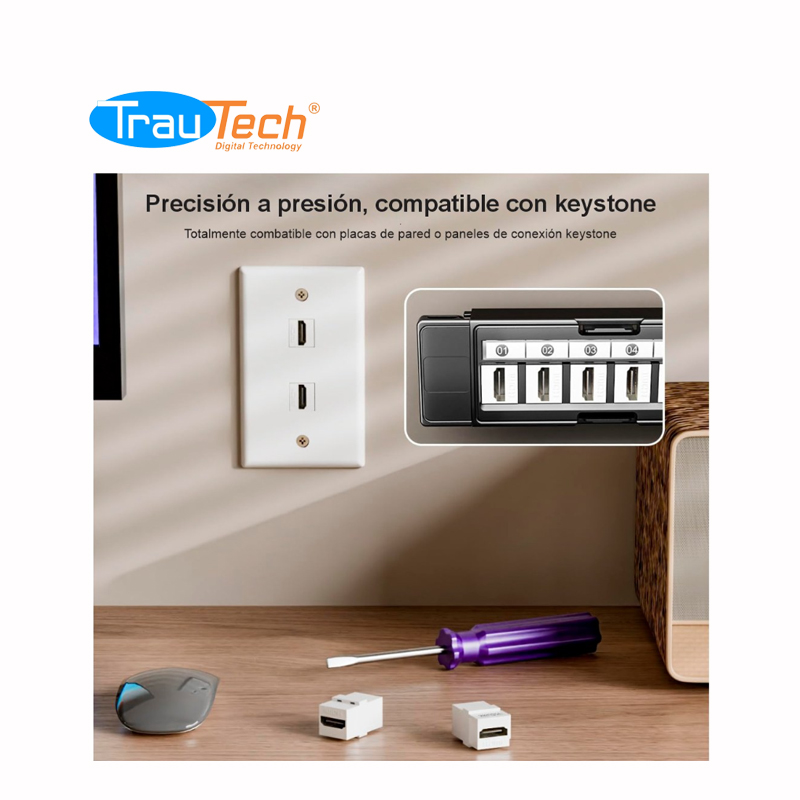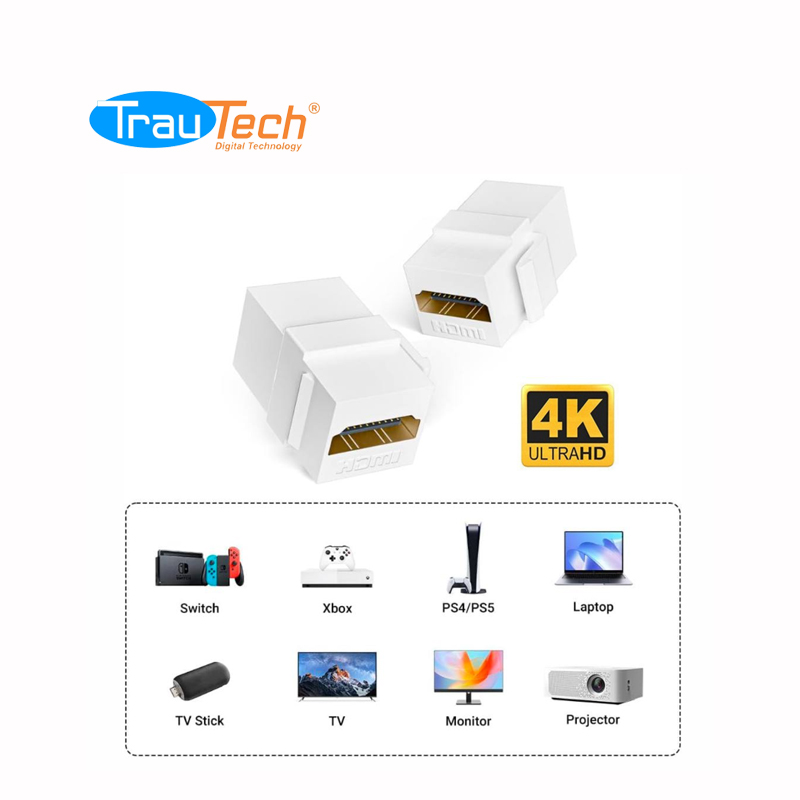 ADAPTADOR EMPALME UNION HDMI 2.0 HEMBRA A HEMBRA DADO RECTO PARA MODULO DE PLACA ULTRA HD 4K 60HZ TRAUTECH