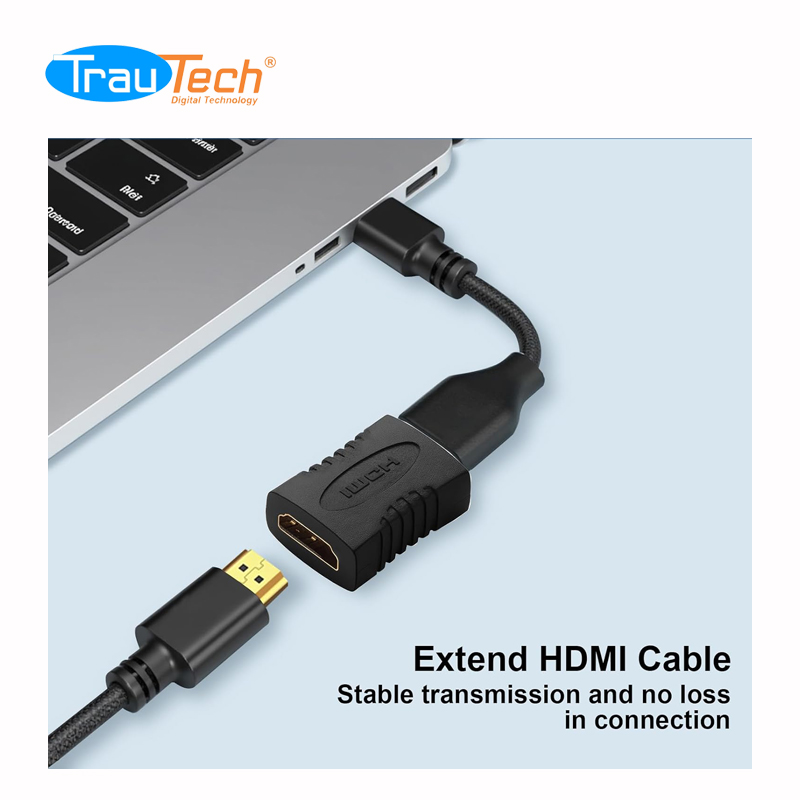 El adaptador HDMI hembra a hembra de alta velocidad puede convertir una interfaz HDMI macho en una interfaz HDMI hembra y alargar la conexión de los dispositivos HDMI mediante la conexión de dos cables HDMI. Los conectores dorados con triple blindaje resistentes a la corrosión garantizan una óptima transmisión de señal.