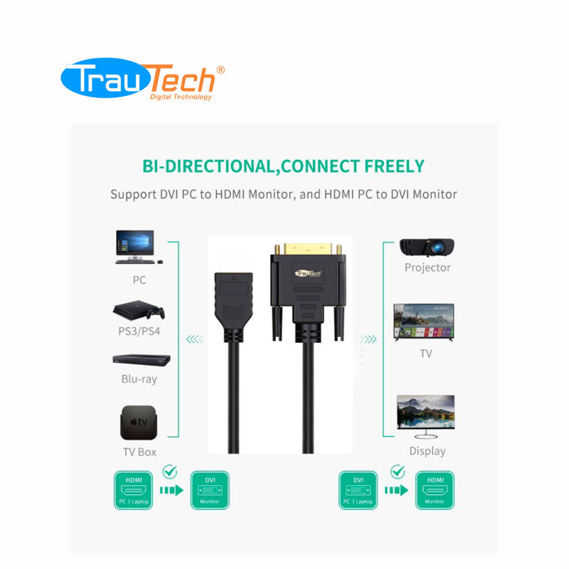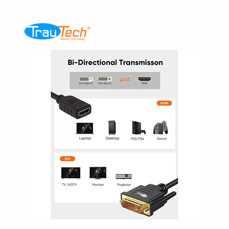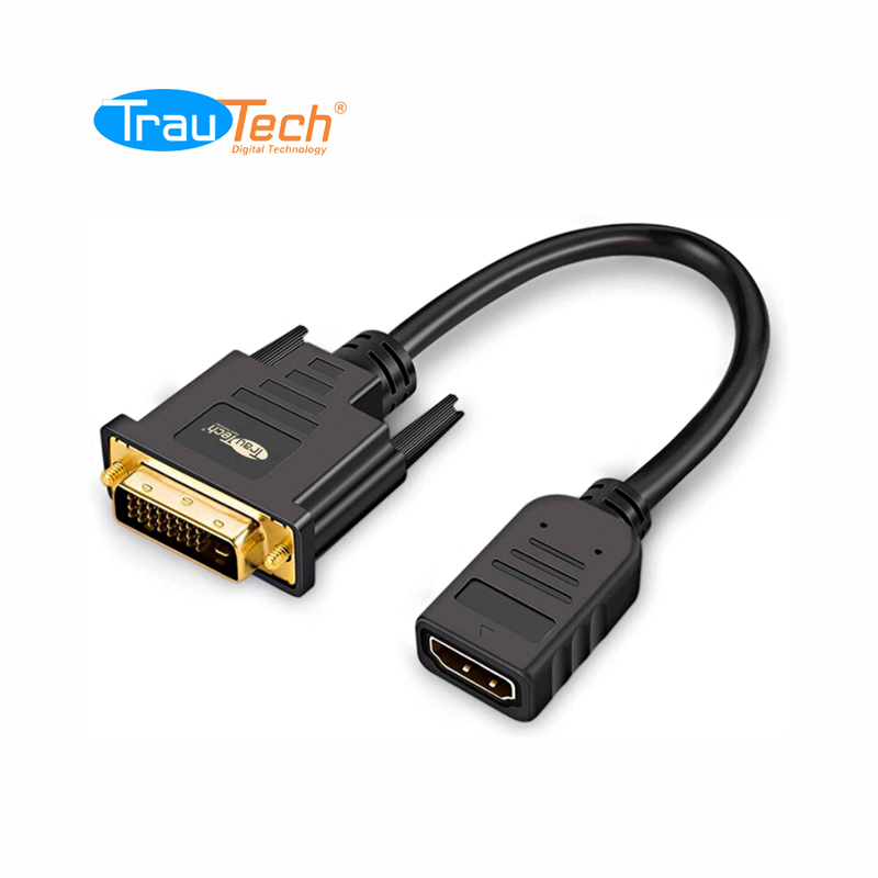 01 CABLE ADAPTADOR DE DVI 24+1 MACHO A HDMI HEMBRA BIDIRECCIONAL TRAUTECH.
