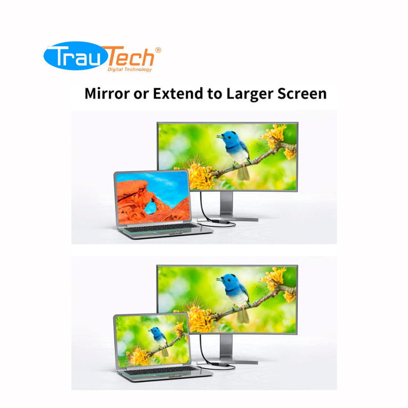 3. Admite modo espejo: dos pantallas muestran la misma imagen. Disfrute de las películas o juegue juegos en HDTV, que muestra el mismo contenido que el escritorio de su computadora.