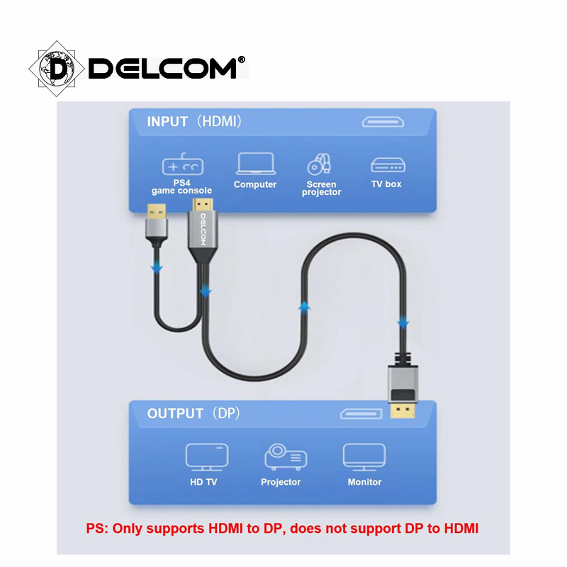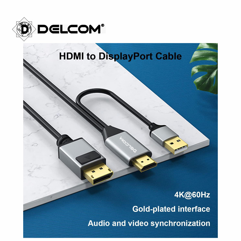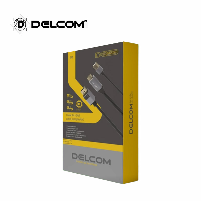CABLE ADAPTADOR DE HDMI A DISPLAYPORT DP DE 2 METROS ULTRA HD 4K 60HZ CON CONECTORES DE ALUMINIO DELCOM