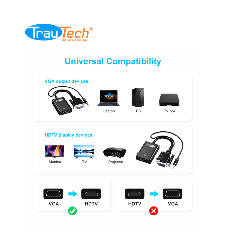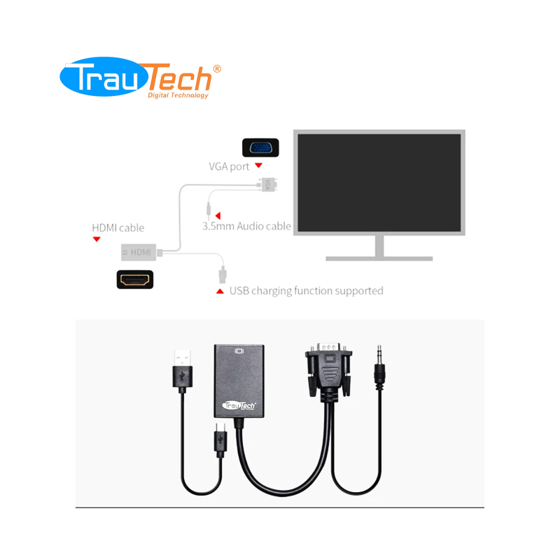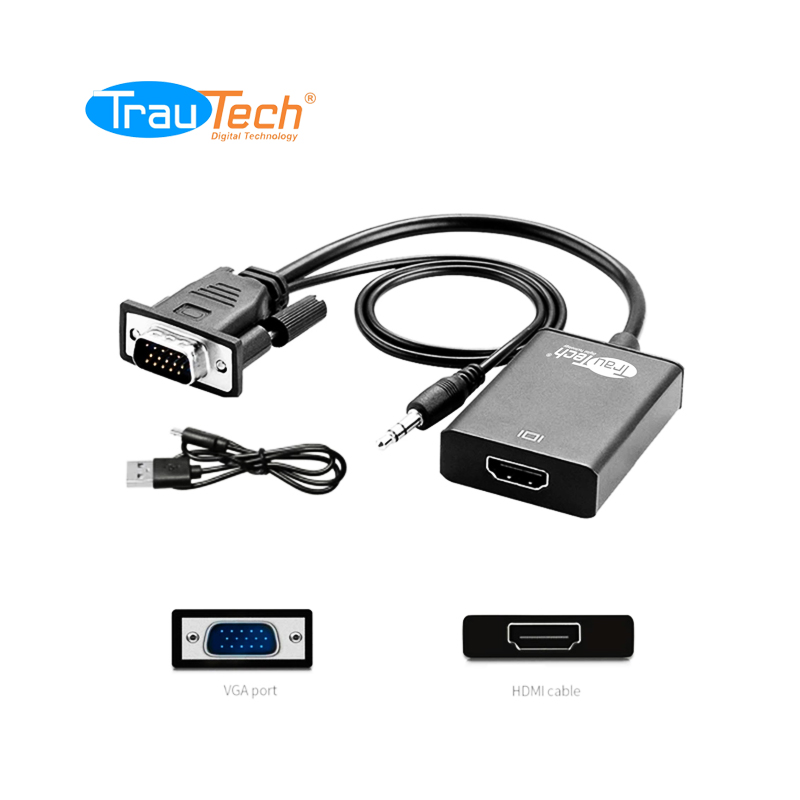 El adaptador VGA a HDMI permite convertir el puerto VGA de un ordenador de sobremesa o portátil en puerto de salida HDMI.