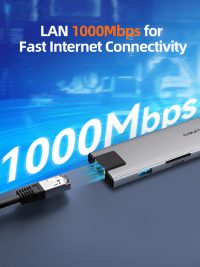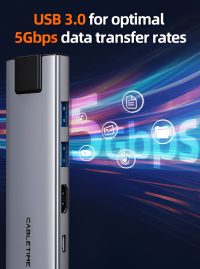 El puerto Gigabit Ethernet ofrece Internet estable de alta velocidad a 1000Mbps. El CableTime USB C Hub con Gigabit Ethernet es esencial para videollamadas sin problemas, juegos en línea y transferencias rápidas de datos.