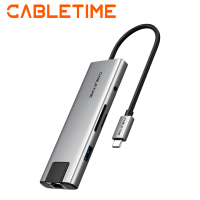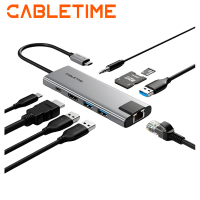 Cabletime 9-in-1 Hub es una potencia de conectividad, transformando un solo puerto USB-C en una estación de trabajo completa. Con HDMI, USB-A, USB-C, Ethernet, lectores de tarjetas y puertos de audio, todo en un dispositivo compacto, elimina la necesidad de múltiples adaptadores y simplifica su configuración, ya sea que esté en casa, en la oficina o en la marcha.