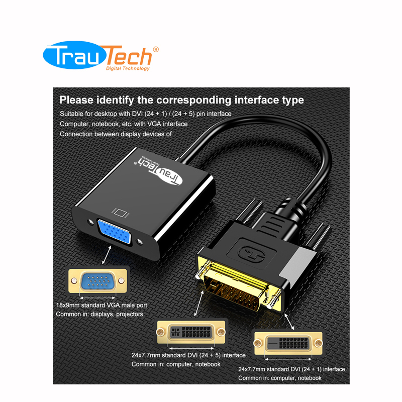 01 CABLE ADAPTADOR DE DVI 24+1 MACHO A VGA HEMBRA ACTIVO TRAUTECH.