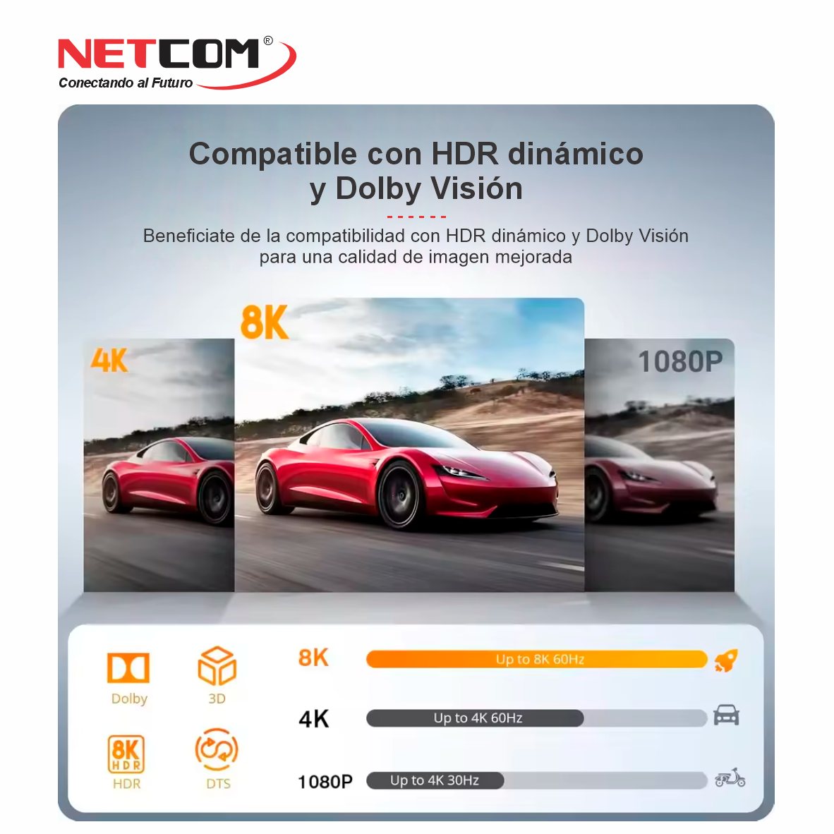 Resolución de vídeo …………………………………………….. hasta 8K @ 60Hz, 4K @ 144Hz, 4K @ 50/60Hz (YUV 4:4:4) HDR.
