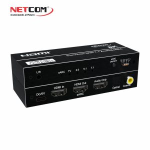 Este switch/conmutador HDMI de 4 puertos le permite compartir una pantalla o proyector HDMI 2.1 con cuatro fuentes de vídeo HDMI 2.1. El conmutador incluye cuantro entradas de video independientes compatibles cada una con resolución 8K a 60Hz, lo cual resulta ideal para la conexión de cuatro fuentes de video a una pantalla con número limitado de puertos HDMI 2.1. También tiene la función de extractor de audio, permitiendole agregar fácilmente altavoces externos, amplificadores, altavoces y receptores a su sistema de juego a través de puertos HDMI (Audio 7.1CH)/Optical/3.5mm. Admite interruptores de control remoto IR y CEC.