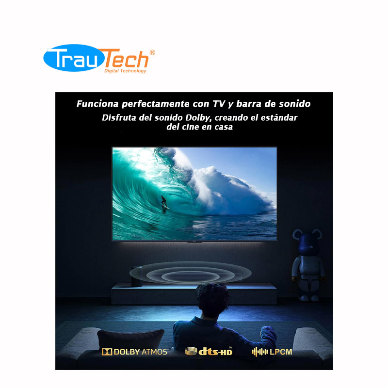 El cable TosLink/Óptico de audio digital de fibra óptica (4 mm), ofrece un sonido limpio y real, sin distorsiones ni interferencias de señal, además de una conexión de alta calidad entre la tarjeta de audio de un PC, Smart Tv y un sistema estéreo/cine en casa. Trae tapas de goma extraíbles, ligeras y flexibles que proporcionan una protección adicional para este cable óptico.