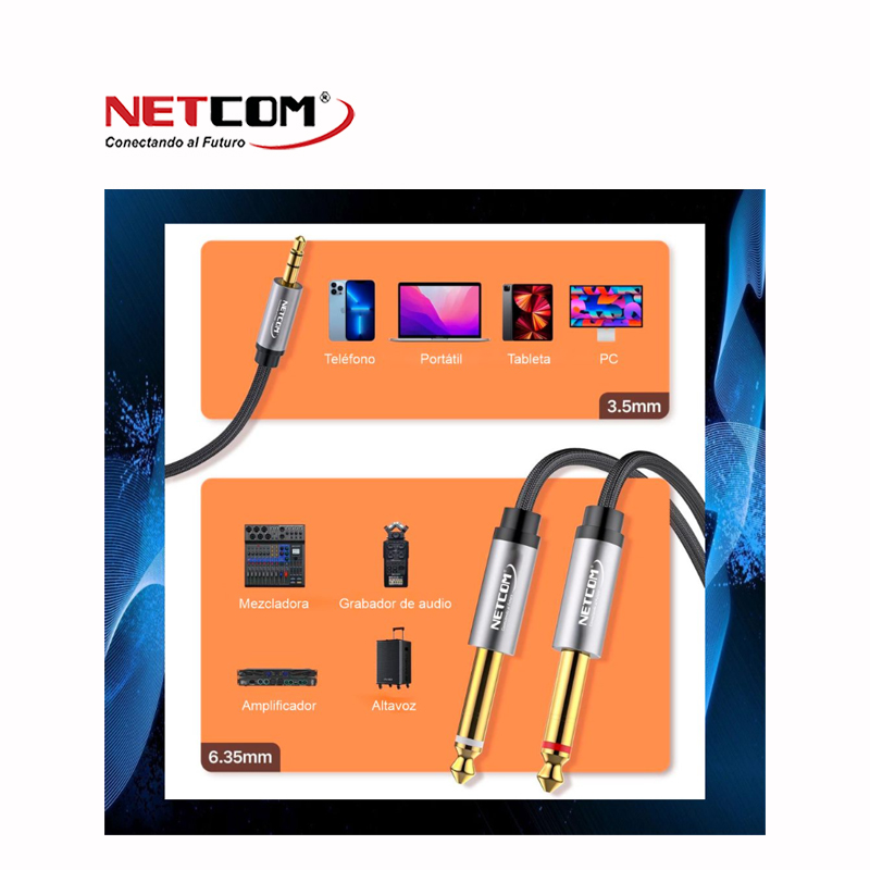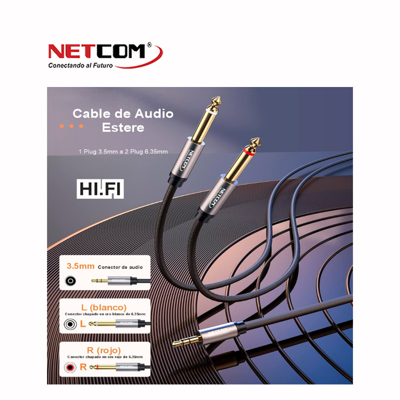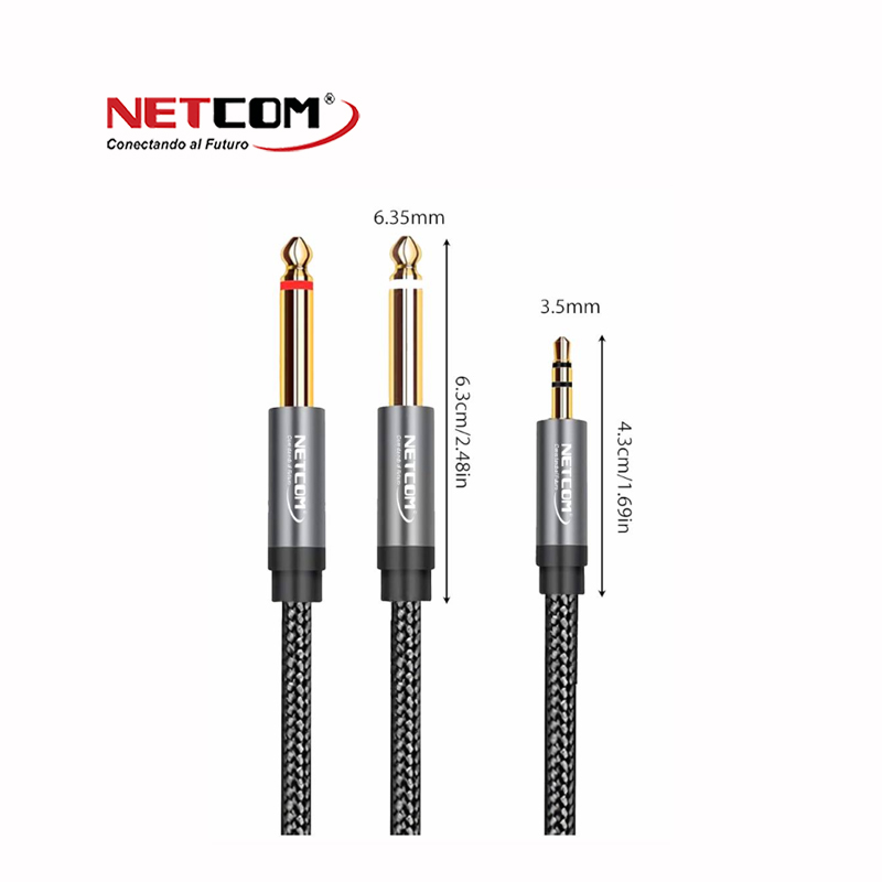 Cable de Audio 1 plug 3.5mm Macho a 2 plug 6.5mm Macho