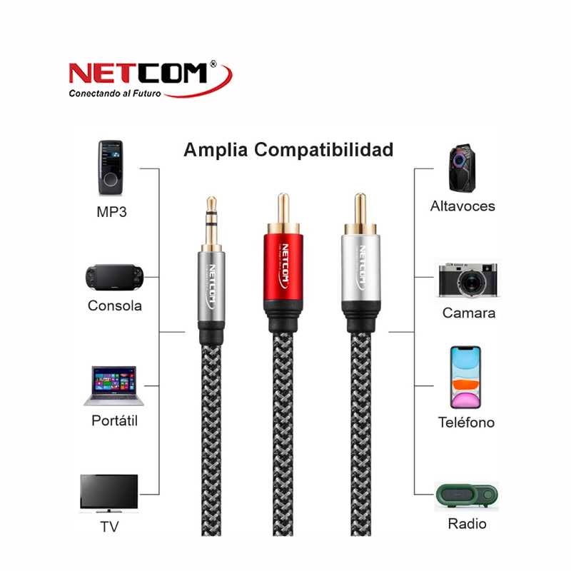 Este cable de audio plug 3,5mm a 2 RCA calidad premium, ofrece una solución eficaz y económica para conectar un dispositivo de audio portátil como un iPod ® (u otro reproductor MP3) a un receptor/amplificador estéreo. Este cable versátil también se puede utilizar para conectar una tarjeta de sonido de PC a un dispositivo de audio que admite entrada de audio RCA. El cable dispone de un conector de audio de 3,5 mm (macho) que se divide en dos conectores macho de audio RCA (Phono) proporcionando sonido estéreo de alta calidad. Los conectores chapados en oro y el cobre de alta pureza proporcionan la máxima conductividad y durabilidad, asegurando una transmisión de audio estéreo óptima. Las chaquetas tejidas de nailon proporcionan protección adicional para evitar daños por flexión y son más fáciles de usar y almacenar. Diseñado para brindar alta calidad de audio, así como una conexión duradera y confiable.