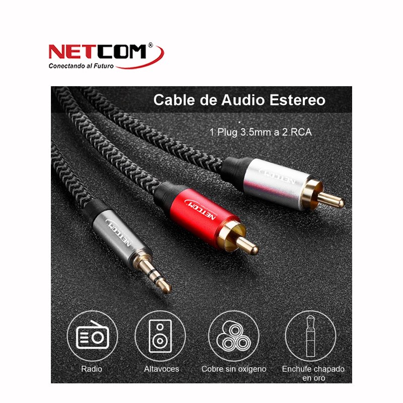Cable de Audio Plug 3.5mm a 2 RCA Macho de 1.80 Mts