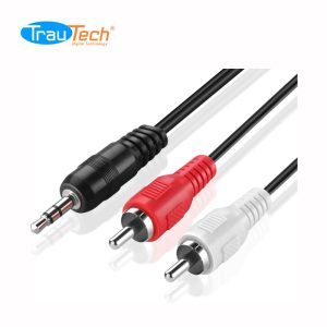 CABLE DE AUDIO ESTEREO DE MINI PLUG 3.5MM MACHO A RCA ROJO Y BLANCO DE 10 METROS TRAUTECH