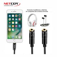 01 CABLE SPLITTER DE AUDIO PLUG 3.5MM DE 1X2 DE 1 MACHO A 2 HEMBRAS NETCOM