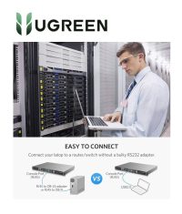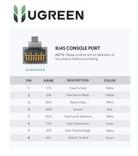 El cable USB a consola UGreen CM204-60813 conecta el puerto USB de su PC a dispositivos habilitados para consola RJ45. Este cable es adecuado para dispositivos como conmutador/enrutador, cortafuegos/servidor con RJ45 (8PC8).