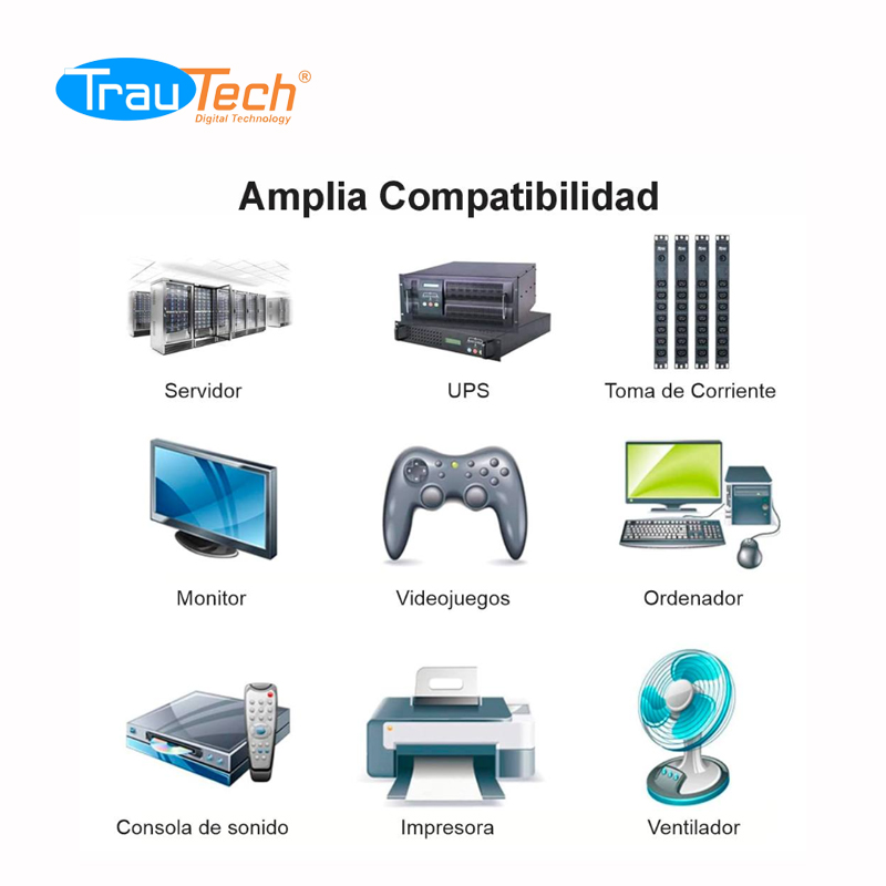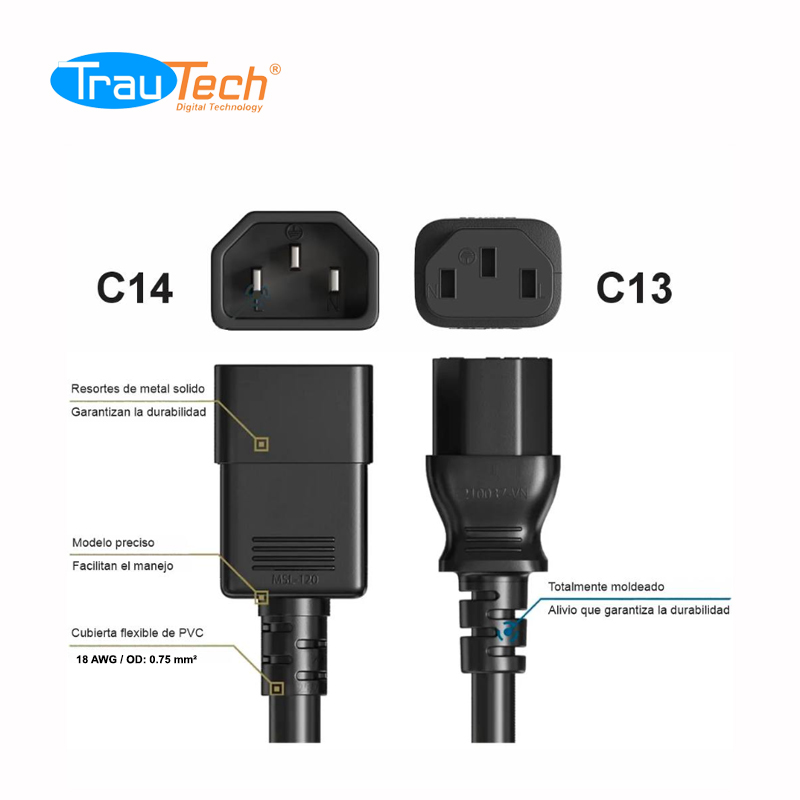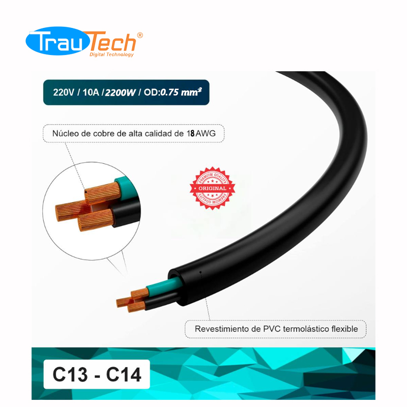 -Cable de poder con conexión a ups y pcs de C13 Hembra a C14 Macho.