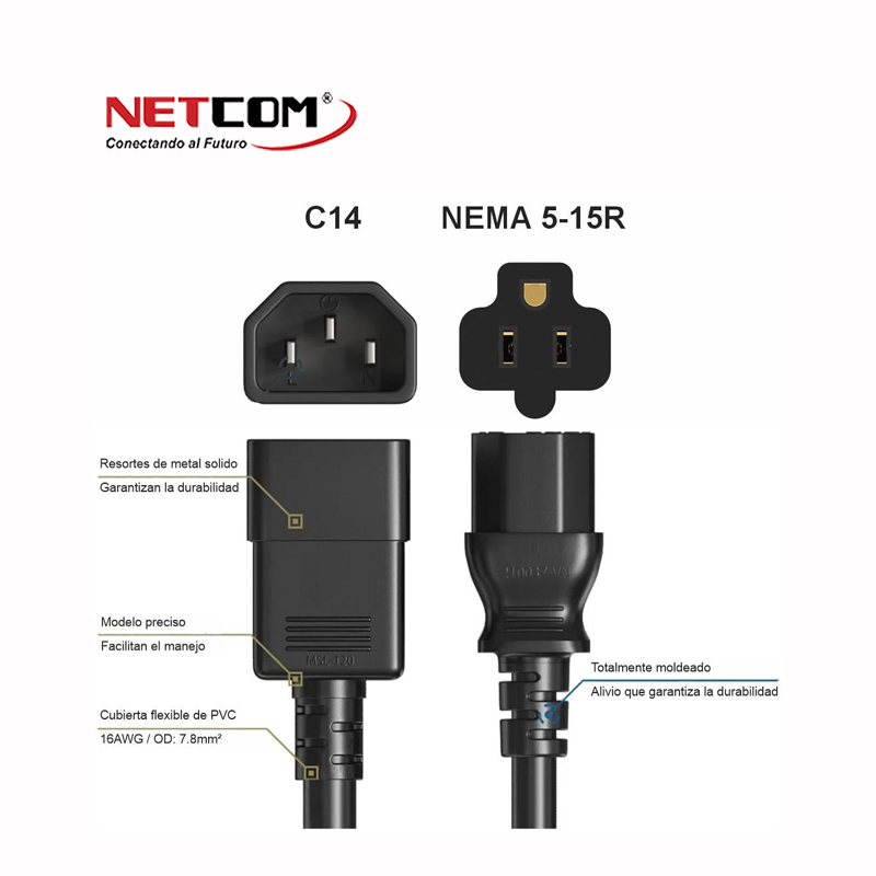 Cable Poder C14 a Nema 5-15R de 1.80 Metros