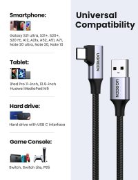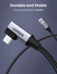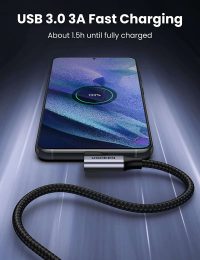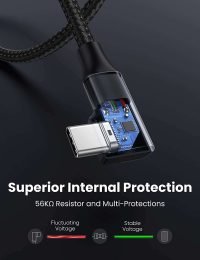 - Diseño de ángulo recto humanizado: este cable de carga rápida USB A a USB C con un innovador diseño de 90 grados «L». Reduce el uso de cables doblados, protege las interfaces del equipo y prolonga la vida útil. Es más conveniente jugar juegos y ver videos mientras se carga.