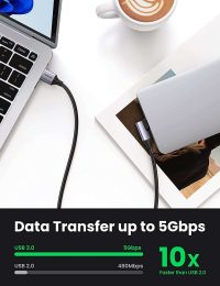 - Carga rápida y velocidad de sincronización: el cable UGREEN tipo C soporta carga rápida de 5 V3 A, que es un 50% más eficiente que otros cables de 5 V2 A. El cable USB C utiliza la interfaz USB 3.0, y la velocidad de transmisión puede alcanzar 5 Gbps, que es 10 veces la del cable de 480 Mbps. Solo tarda un segundo en transferir películas 1G.