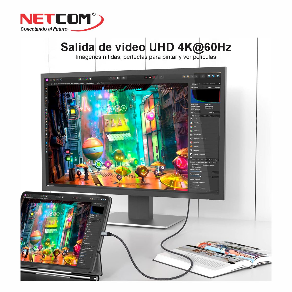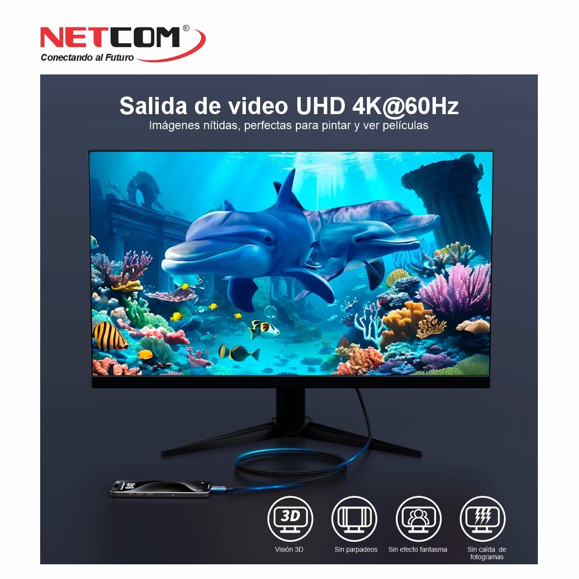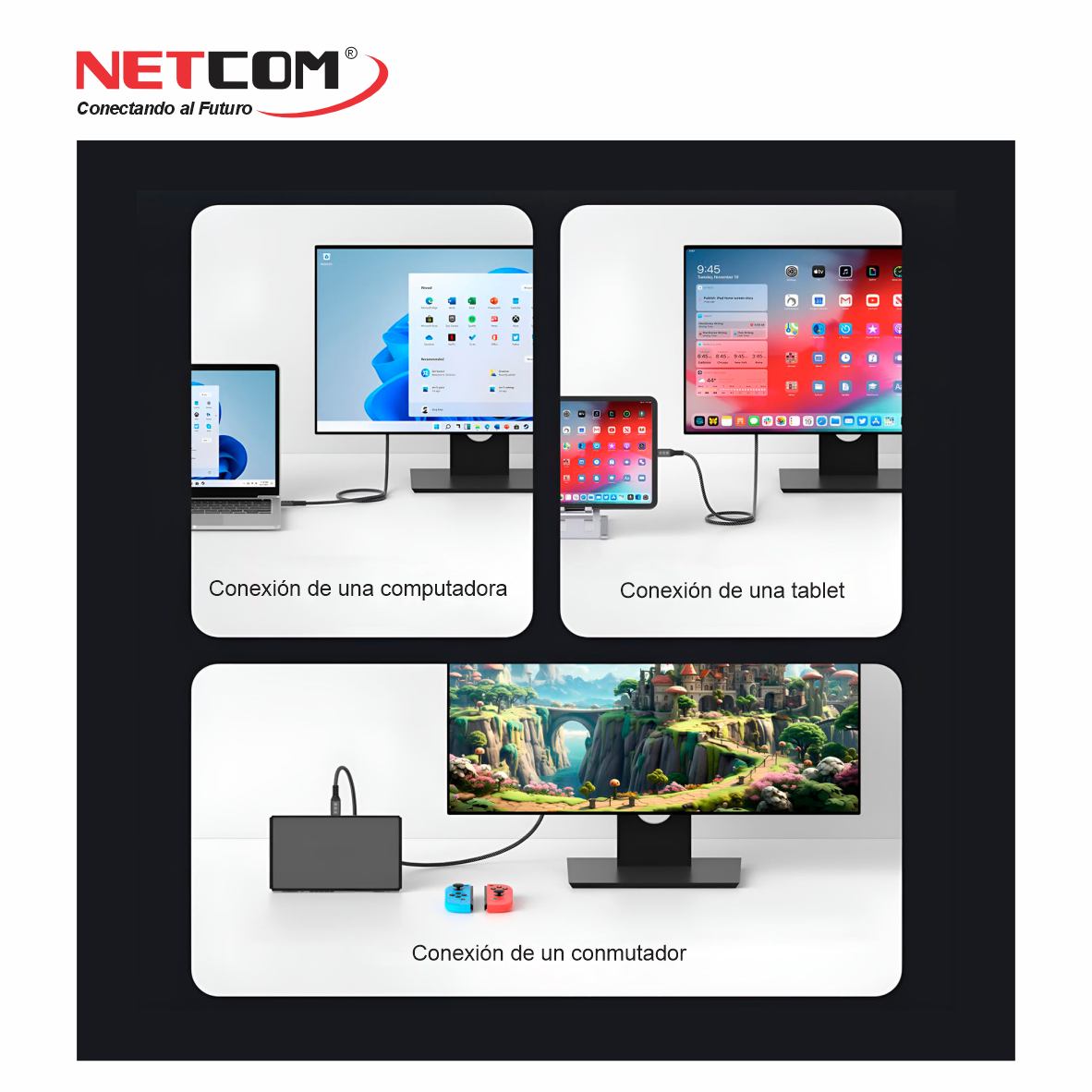 CABLE USB 3.2 TIPO C GEN2X2 A USB 3.2 TIPO C GEN2X2 DE 30 CENTIMETROS AMBOS MACHOS 20GBPS ULTRA HD 4K 60HZ PASA VIDEO Y DATOS 100WATTS CON CONECTORES DE ALUMINIO NETCOM
