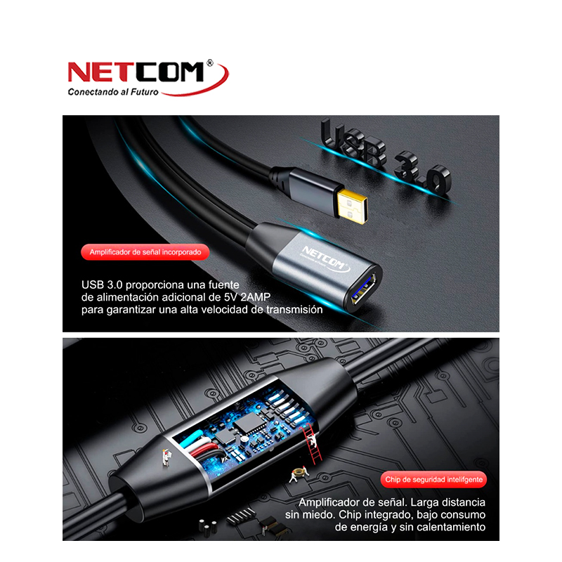 * Circuito amplificador integrado que potencia activamente la señal USB.