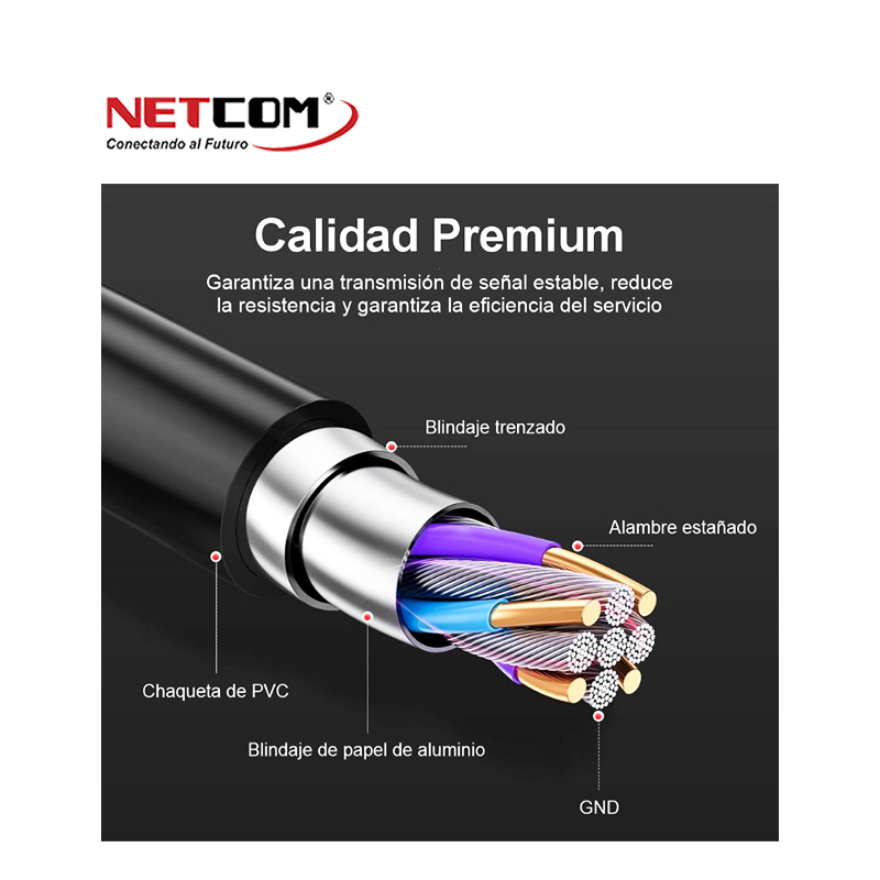 * Triple blindado (lámina/trenza/tierra) que proporciona la máxima resistencia de EMI/RFI y calidad de señal superior. La estructura de cuatro núcleos asegura que la señal diferente no interfiera entre sí.
