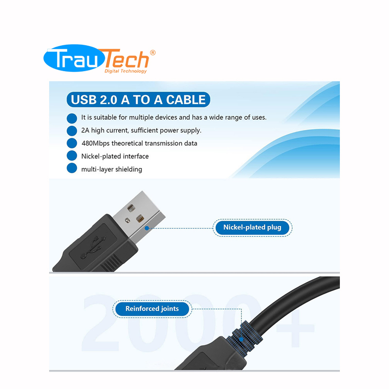 Hechos de materiales, estos extensores USB 2.0 macho a macho cuentan con núcleos de alambre gruesos que resisten tirones y enredos, asegurando largos rendimientos.
