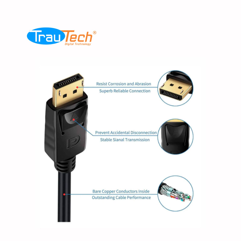 CABLE DISPLAYPORT DP 1.2 ULTRA HD 4K A 60HZ PVC 21,6GBPS TRAUTECH
