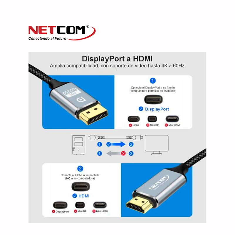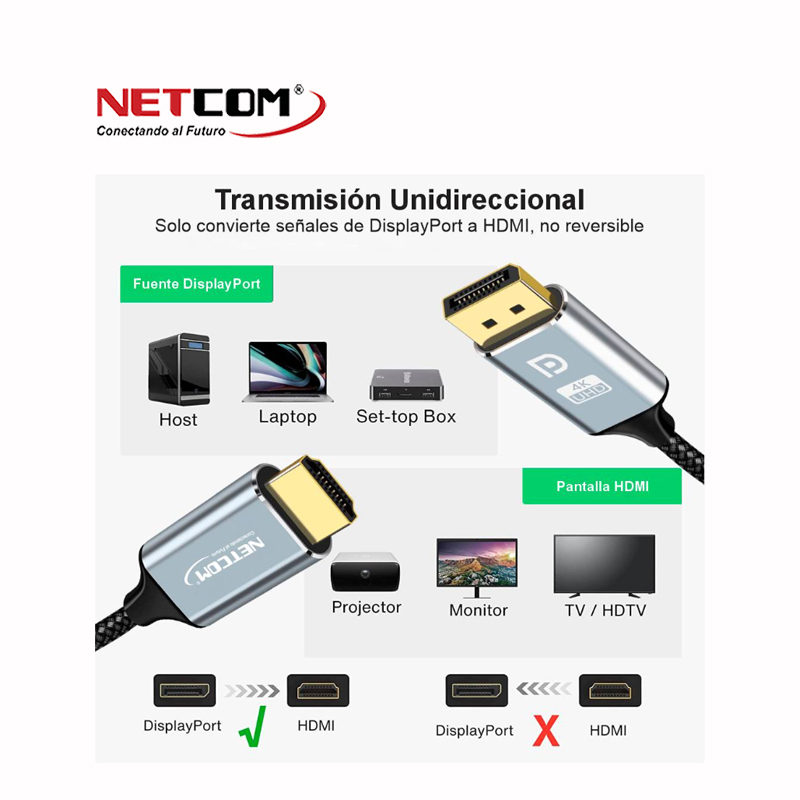 Nota: Este es un cable unidireccional DisplayPort a HDMI, no es compatible con HDMI a DisplayPort. No es bidireccional.