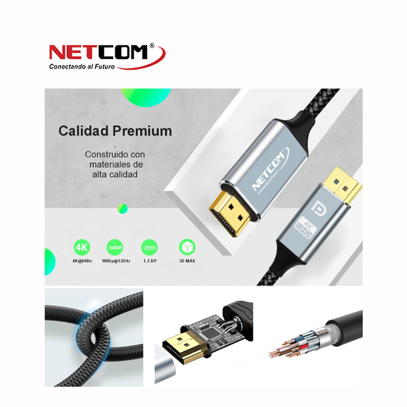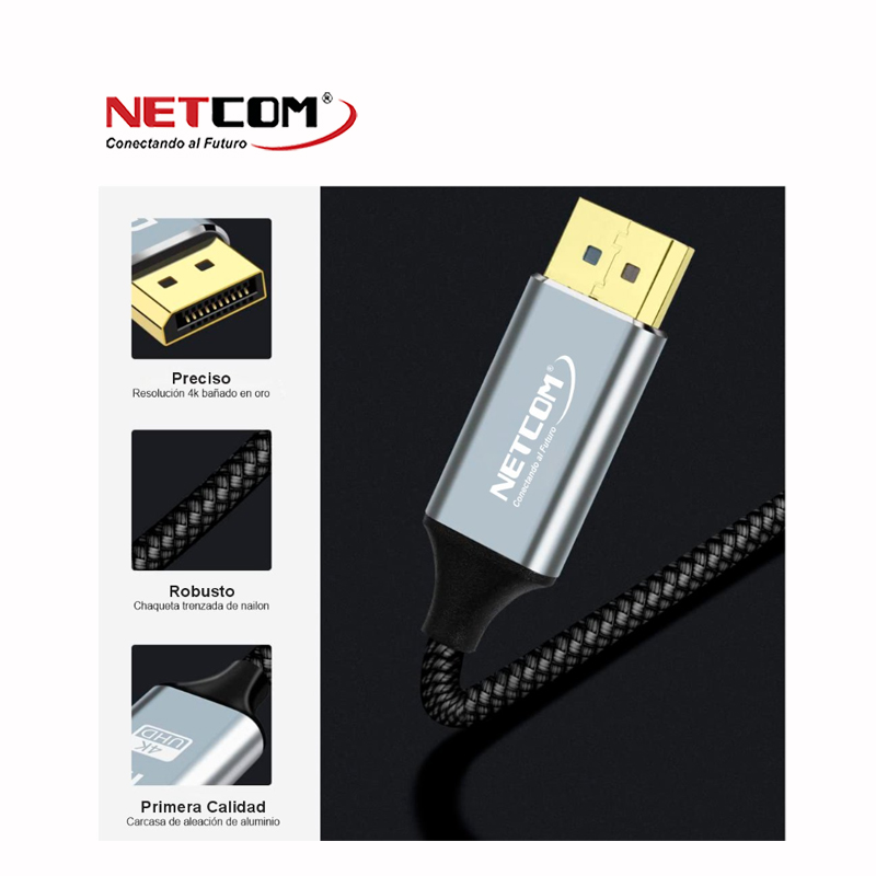 Este cable adaptador DisplayPort™ a HDMI® permite conectar su Ultrabook™, PC portátil o de escritorio equipado con DisplayPort a una pantalla o proyector HDMI, sin necesidad de adaptadores o cables adicionales. Transmite los mismos medios en una pantalla grande (duplicación de video) o participa en una reunión Zoom y mira los datos del informe simultáneamente (escritorio extendido) para mejorar la eficiencia del trabajo. El cable adaptador funciona con fuentes de video y pantallas 4K@60Hz, lo cual garantiza que se mantiene una calidad impresionante de imagen, cuatro veces la resolución de 1080p, al convertir DisplayPort a HDMI. También es retrocompatible con fuentes de video y pantallas de resolución inferior. Compatible con versiones anteriores de 1440P@60Hz, 1080P@120Hz, conectando una computadora DP a cualquier pantalla HDMI como TV, monitor o proyector unidireccionalmente, garantizando la compatibilidad futura de su configuración existente con video 4K. La chaqueta trenzada de nailon suave y flexible protege el delicado núcleo de fibra. El diseño de este cable elimina la interferencia EMI / RFI común a los cables de audio de calidad estándar.