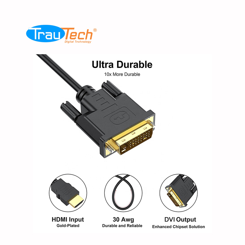 01 CABLE HDMI A DVI 24+1 DE 5 METROS VIDEO DIGITAL TRAUTECH.