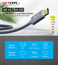 CONTENIDO: 01. Cable HDMI Slim Nylon Versión 2.0 de 5 Metros