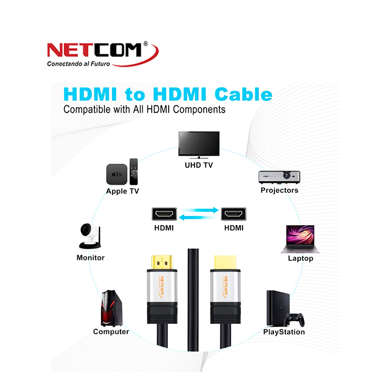 El cable HDMI 2.0 macho a macho de NETCOM cuenta con ARC (canal de retorno de audio mejorado) para entregar directamente audio sin compresión, sin pérdida y de resolución completa desde la TV a la barra de sonido / receptor de AV. No necesita ningún cable de audio adicional.
