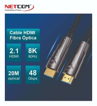 01 CABLE HDMI 2.1 DE FIBRA OPTICA DE 20 METROS ULTRA HD 4K A 120HZ Y EN 8K 60HZ NETCOM